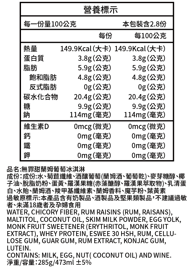 無罪甜冰淇淋品脫 : 蘭姆葡萄 (473ml)